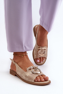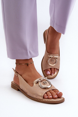 +3Eleganckie Sandały Damskie Ze Złotą Ozdobą Na Płaskim Obcasie Różowe Złoto S.Barski KV27-053