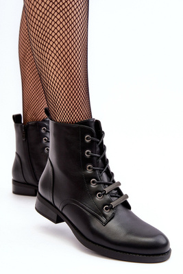 Skórzane Botki Damskie Na Masywnym Obcasie Czarne Fllavie
