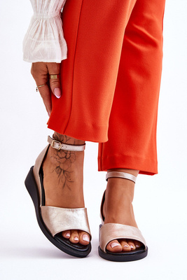 Damskie Klasyczne Skórzane Sandały Na Koturnie Złote Truett