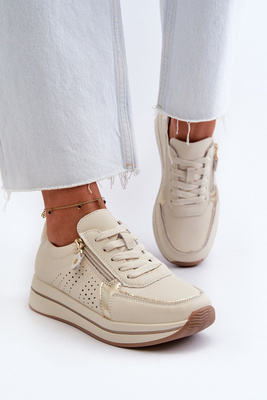 +2Zazoo 2F-7033 Sneakersy Na Masywnej Platformie Biało-Złote