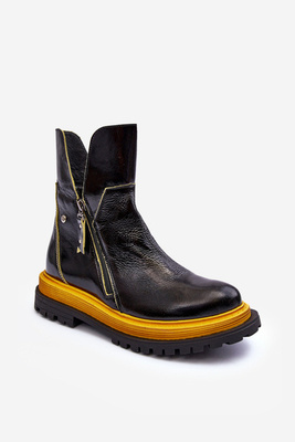 +1Skórzane Damskie Botki Na Obcasie Czarne Lemar Kodra