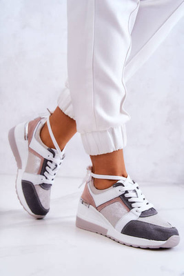 Skórzane Buty Sportowe Sneakersy Na Koturnie Srebrno-Szare Elissa