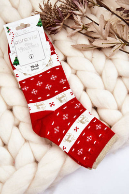+4Damskie Skarpety W Świąteczne Wzory Renifer I Śnieżynki Czerwone
