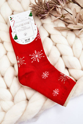 +4Damskie Skarpety W Świąteczne Wzory Śnieżynki Czerwone