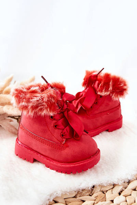 Dziecięce Botki Traperki Ocieplone Futerkiem Czerwone Tesoro