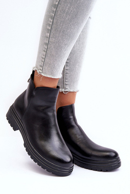 +2Botki Skórzane Na Masywnym Obcasie Z Suwakami Czarne Lemar Littosa