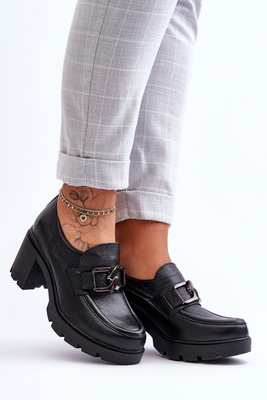 +12Eleganckie Półbuty Na Słupku Z Ozdobą Czarne Lemar Harmell