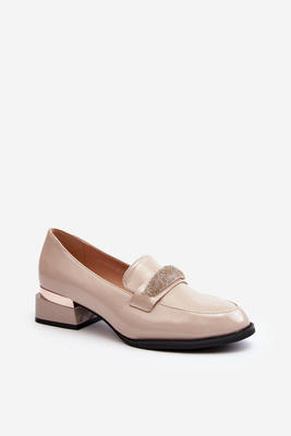Damskie Półbuty Lakierowane Na Niskim Obcasie Beżowe Marilni