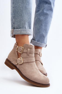 Damskie Botki Na Płaskim Obcasie Z Paskami Jasnobeżowe Melviana