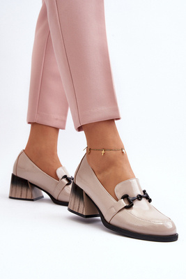 Lakierowane Półbuty Na Obcasie Beżowe Nireva