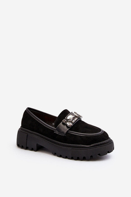 Mokasyny Damskie Z Ozdobnym Paskiem Czarne Nancille
