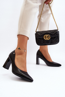 Czółenka Na Słupku Eko Skóra Czarne Giseleni