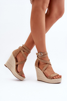 Sandały Na Koturnie Z Plecionką Brązowe Salthe