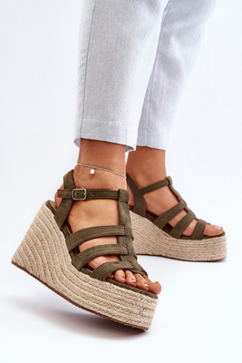 Sandały Na Koturnie Z Plecionką Zielone Gnosis