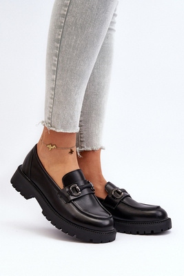 Damskie Mokasyny Eko Skórzane Czarne Ledda