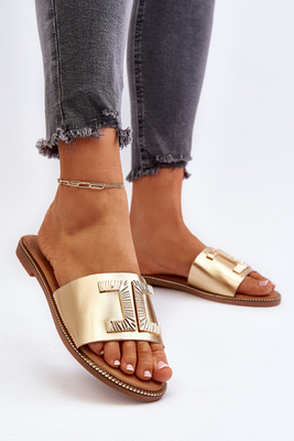 Klapki Damskie Z Ozdobą Złote Ollavia