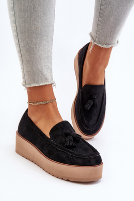 Mokasyny Damskie Na Platformie Z Frędzlami Czarne Mialani