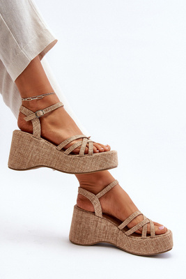 Sandały Na Platformie I Koturnie Beżowe Oporia