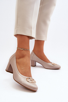 Czółenka Na Niskim Słupku Z Ozdobą Beżowe Aeliris
