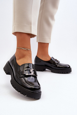 Lakierowane Mokasyny Damskie Czarne Santtes