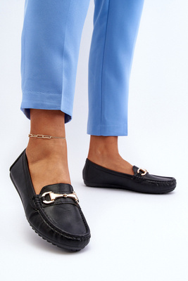 Damskie Klasyczne Mokasyny Eko Skórzane Czarne Demese