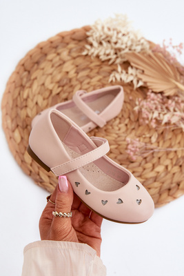 Balerinki Dziecięce Z Sercami Zapinane Na Rzep Różowe Danaella