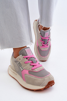 Sneakersy Damskie Na Platformie Memory Foam System Big Star NN274680 Szaro-Różowe