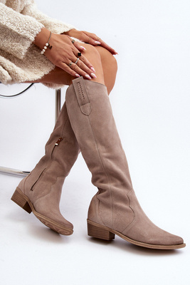 Damskie Zamszowe Kozaki Przed Kolano Ciemnobeżowe Lewski 3367