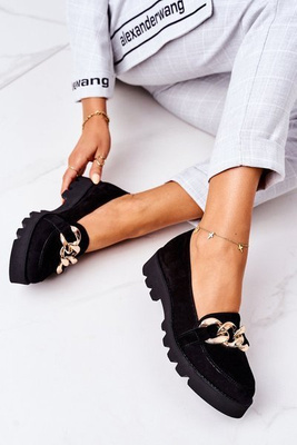 Damskie Zamszowe Mokasyny S.Barski Czarne