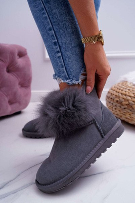 +1Damskie Botki Śniegowce Ocieplane Futerkiem Skóra Zamsz Szare Memento