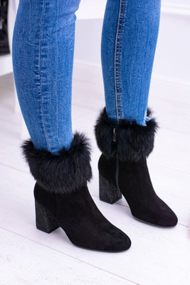 Damskie Czarne Zamszowe Botki Z Futrem Laura Messi 1689