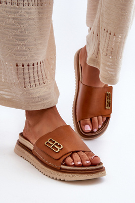 Zazoo 50101 Klapki Damskie Skórzane Na Platformie Brązowe