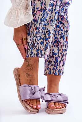 Zamszowe Damskie Klapki Z Kokardą Fioletowe Ambra