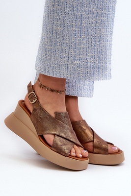 Sandały Damskie Z Eko Skóry Na Platformie I Koturnie Miedziane Vaiara