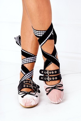 Wiązane Welurowe Baleriny Lu Boo Różowe