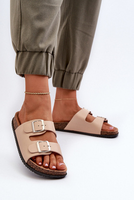 Klapki Damskie Z Klamrami Beżowe Oliena