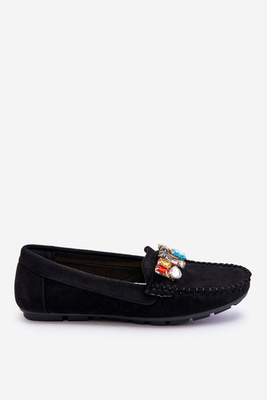 Damskie Zamszowe Mokasyny Z Kryształkami Czarne Lucille