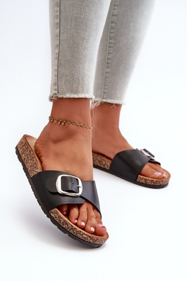 Klapki Damskie Na Korkowej Platformie Z Klamrą Czarne Moaxi