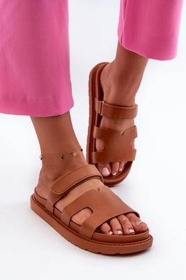 Eko Skórzane Klapki Damskie Na Rzep Camel Silaka