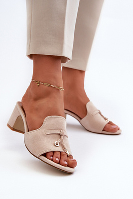 Klapki Damskie Z Eko Zamszu Na Obcasie Beżowe Jemenna