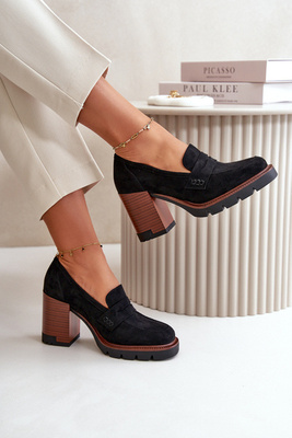 Półbuty Damskie Na Obcasie Słupku Z Eko Zamszu Czarne Vinceza 58105