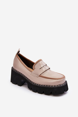 Skórzane Damskie Mokasyny D&A MR870-32 Beżowe
