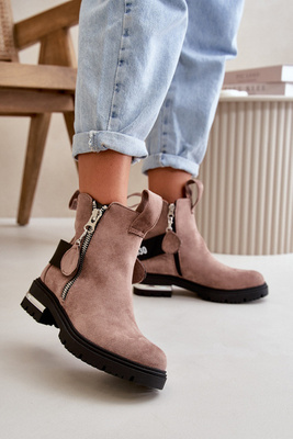 Ocieplane Botki Damskie Z Suwakiem Ciemnobeżowe Calvaro