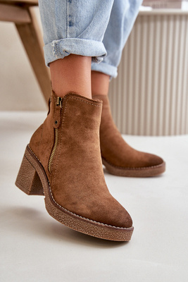 Ocieplane Botki Damskie Na Słupku Z Eko Zamszu Brązowe Velarilla