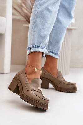 Zazoo 20168 Eleganckie Półbuty Damskie Na Słupku Skóra Naturalna Ciemnobeżowe