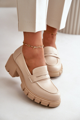 Damskie Półbuty Na Niskim Obcasie Z Eko Skóry Beżowe Menloa