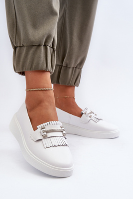 Skórzane Mokasyny Damskie Na Platformie Białe Assetnima