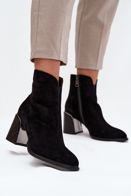 Zamszowe Botki Damskie Na Słupku Z Tłoczeniem Ocieplane Vinceza 66801 Czarne