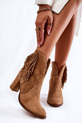 Zamszowe Kozaki Kowbojki Lewski Shoes 3198 Cappucino