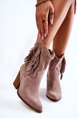 Damskie Zamszowe Botki Na Obcasie Nicole 2757 Beżowe